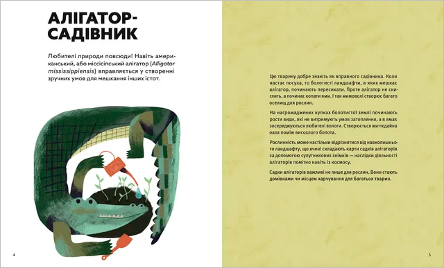Але яка користь планеті з того, що дощові черв’яки їдять землю? Як зміниться підводний світ, якщо не буде акул? Чи можете ви уявити алігатора – садівником, а слона – копачем криниці? Погодьтесь, тварини вміють здивувати! До того ж вони є справжніми екозахисниками й щодня роблять нашу планету кращим місцем для життя. А от як їм так вдається і чим кожен із нас може їм допомогти – дізнайтесь на сторінках цієї книжки.