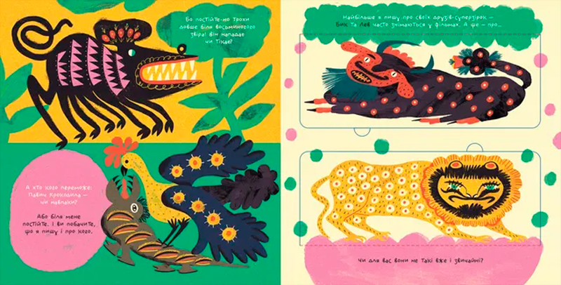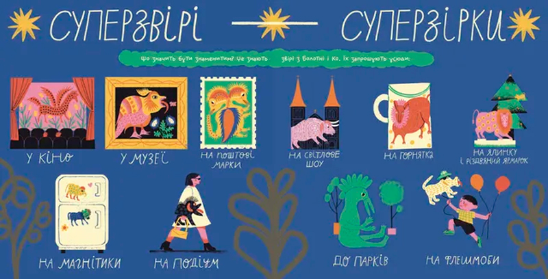 Інколи ти ходиш до музею, щоб подивитися на картини. Уяви лишень — вони теж на тебе дивляться! І варто останній людині вийти із зали, як вони починають своє таємне життя. Дивозвірі з картин Марії Примаченко дружать, ворогують, багато пліткують про мистецтво, галереї і навіть про людей. А ще вони нудяться по сховищах і так засумували за подорожами, виставками і маленькими гостями, що вирішили розкрити тобі свої секрети.