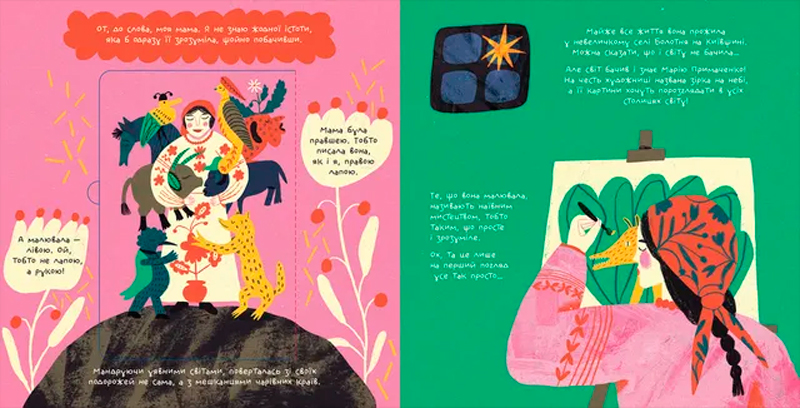 І наостанок — маленька таємниця: частина ілюстрацій та фактів ховаються у віконечках, тобто книжечка є інтерактивною і стане цікавою навіть для малюків, які можуть у прямому сенсі відкривати віконця у світ творчості великої мисткині.